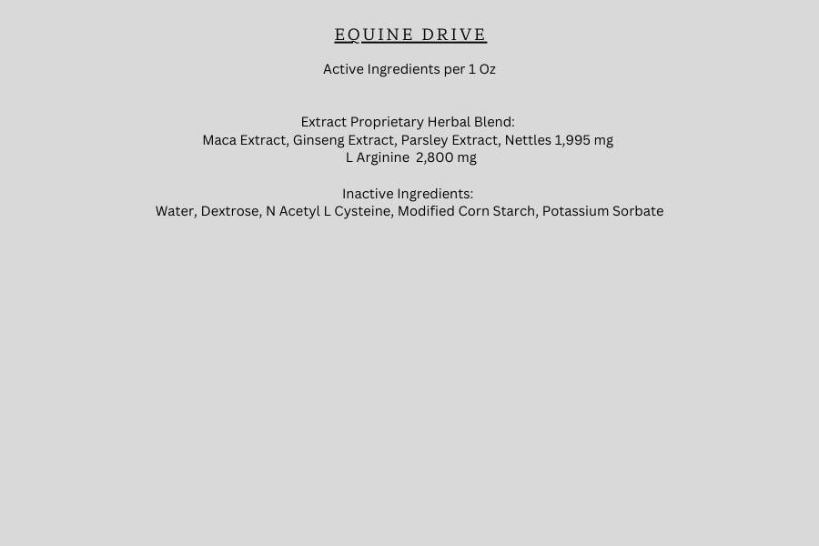 Equine-Drive is an herbal supplement specifically formulated for stallions that may be showing a lack of interest or during times of high demand. Clinically tested, it contains natural ingredients like green tea extract, peppermint leaf and ginger root that have been proven to stimulate interest and enhance performance. For maximum benefit, give a full tube three days in a row, take a break and repeat as needed.