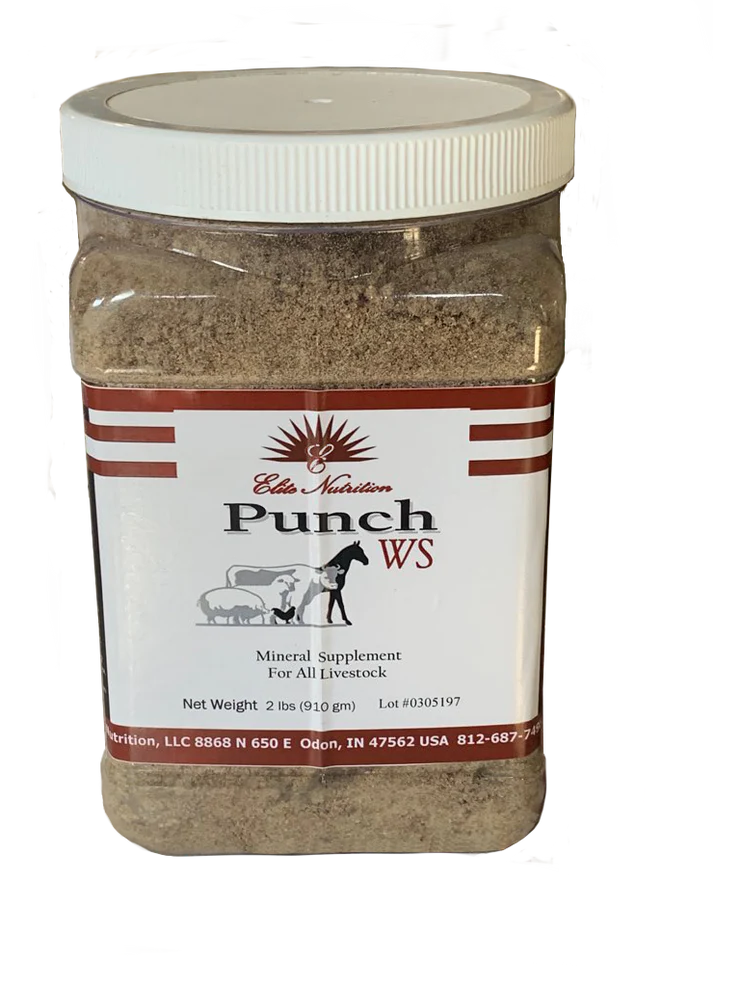 Punch WS is a water soluble mineral and electrolyte blend. Best used in times of stress, extra work days, high heat days or sickness. The blend may help