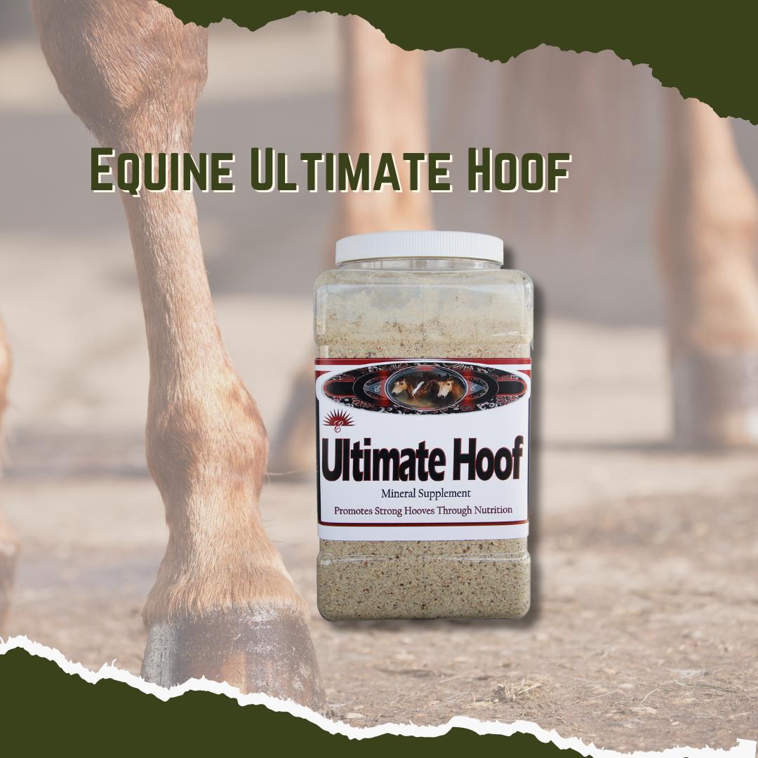 Achieve the ultimate healthy hooves with Ultimate Hoof! Our premium formula includes biotin for strong hoof growth, essential minerals like calcium and chelated zinc, and the added benefits of amino acids L-lysine and DL methionine. Formerly known as Hoof Ensure, our product is now even stronger. Elevate your horse's hoof care routine with Ultimate Hoof.