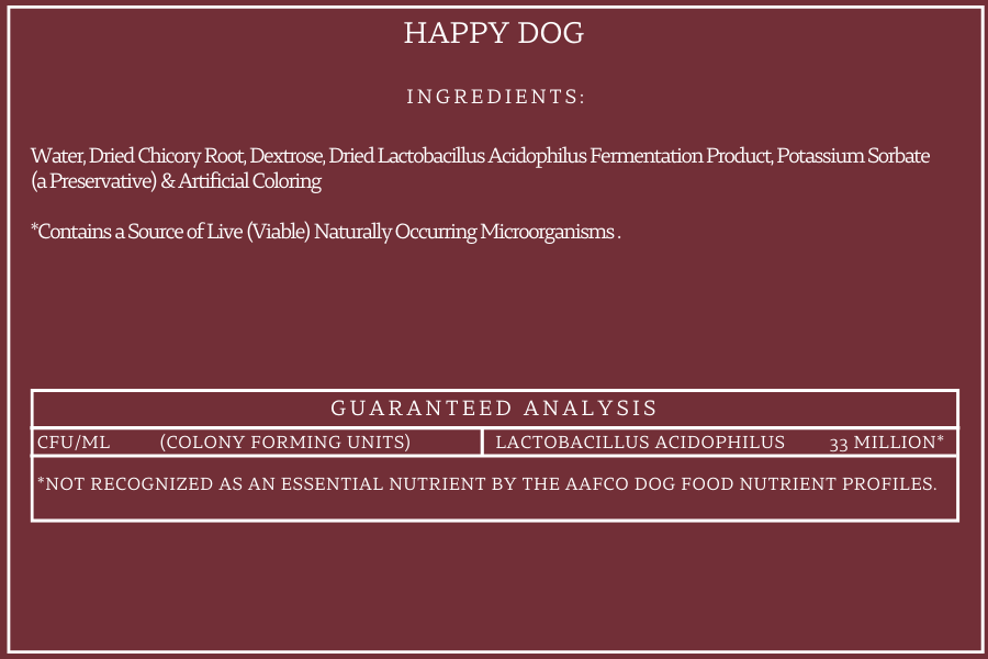 Our "Happy Dog" promotes and maintains normal G.I. function!